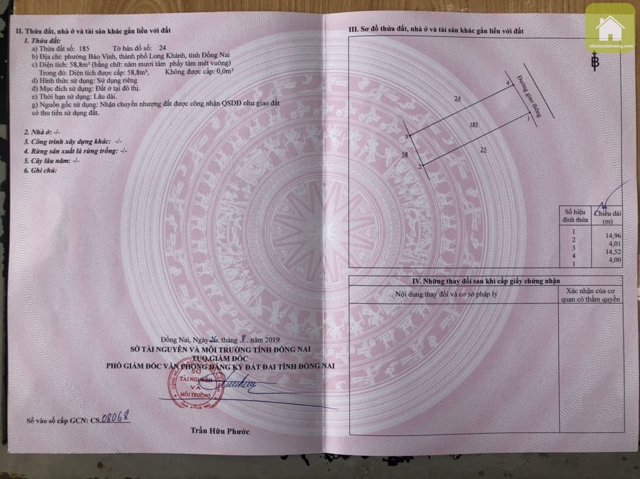59 m2 thổ cư Chợ Bảo Vinh TP. Long Khánh